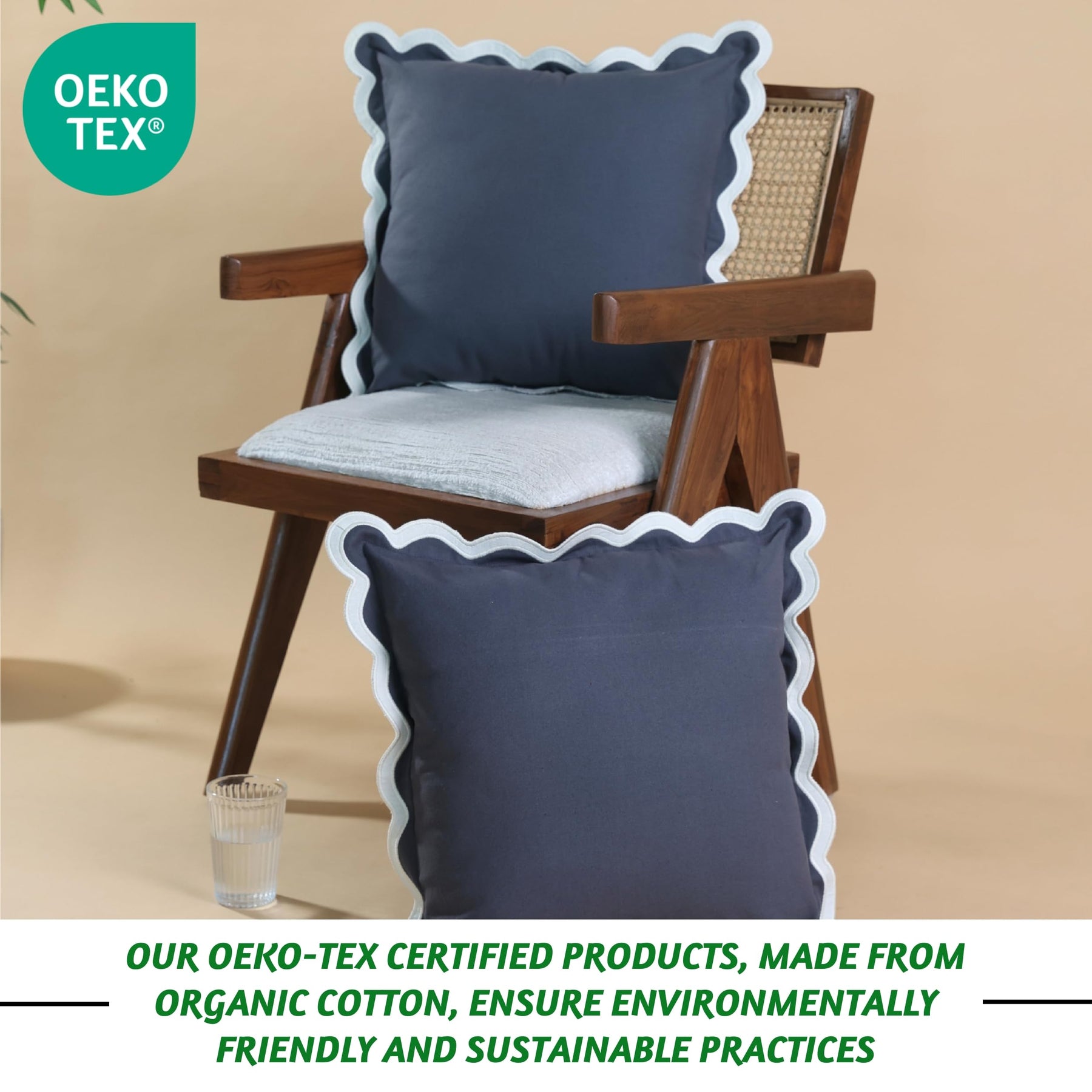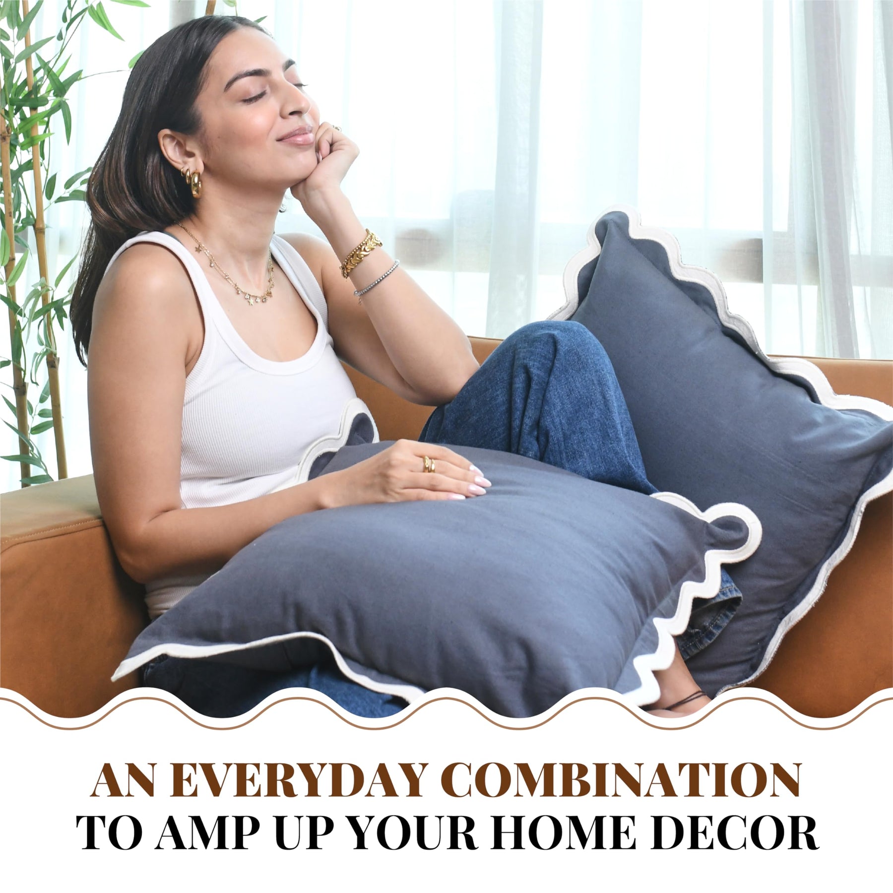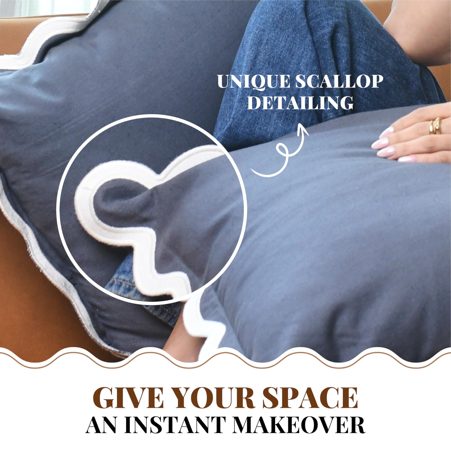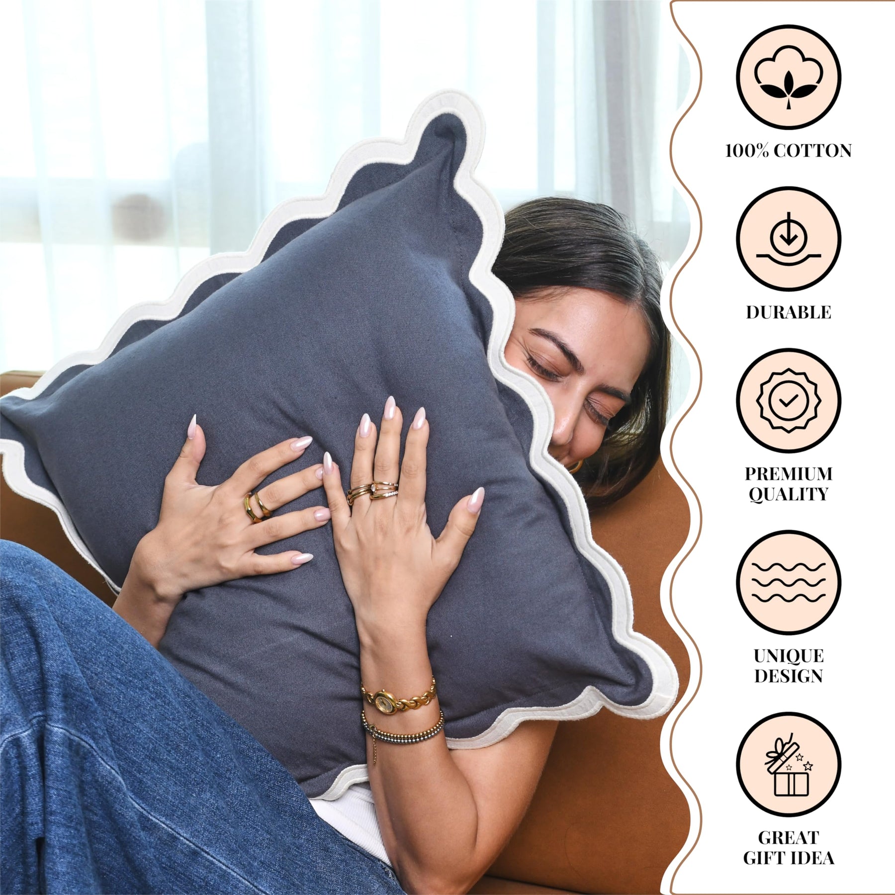 Add a touch of elegance and charm to your home with the Folkulture Scallop Throw Pillow Covers. This set of two 18 x 18 decorative pillow covers is crafted from 100% soft cotton, offering both comfort and style. Designed with a modern scalloped pattern that beautifully blends vintage and boho aesthetics, these pillow covers make a stunning statement piece for your living room, bedroom, farmhouse, or even outdoor seating spaces. Each cover features a concealed back zipper for a neat finish and easy insertion or removal of cushions. The soft and breathable cotton fabric ensures a cozy feel while maintaining durability for everyday use. Ideal as a thoughtful gift for occasions like housewarmings, birthdays, or festive celebrations, these blue throw pillow covers bring warmth, sophistication, and a hint of playfulness to any décor. For long-lasting beauty, hand wash is recommended, though they can also be machine washed cold and tumble dried low.