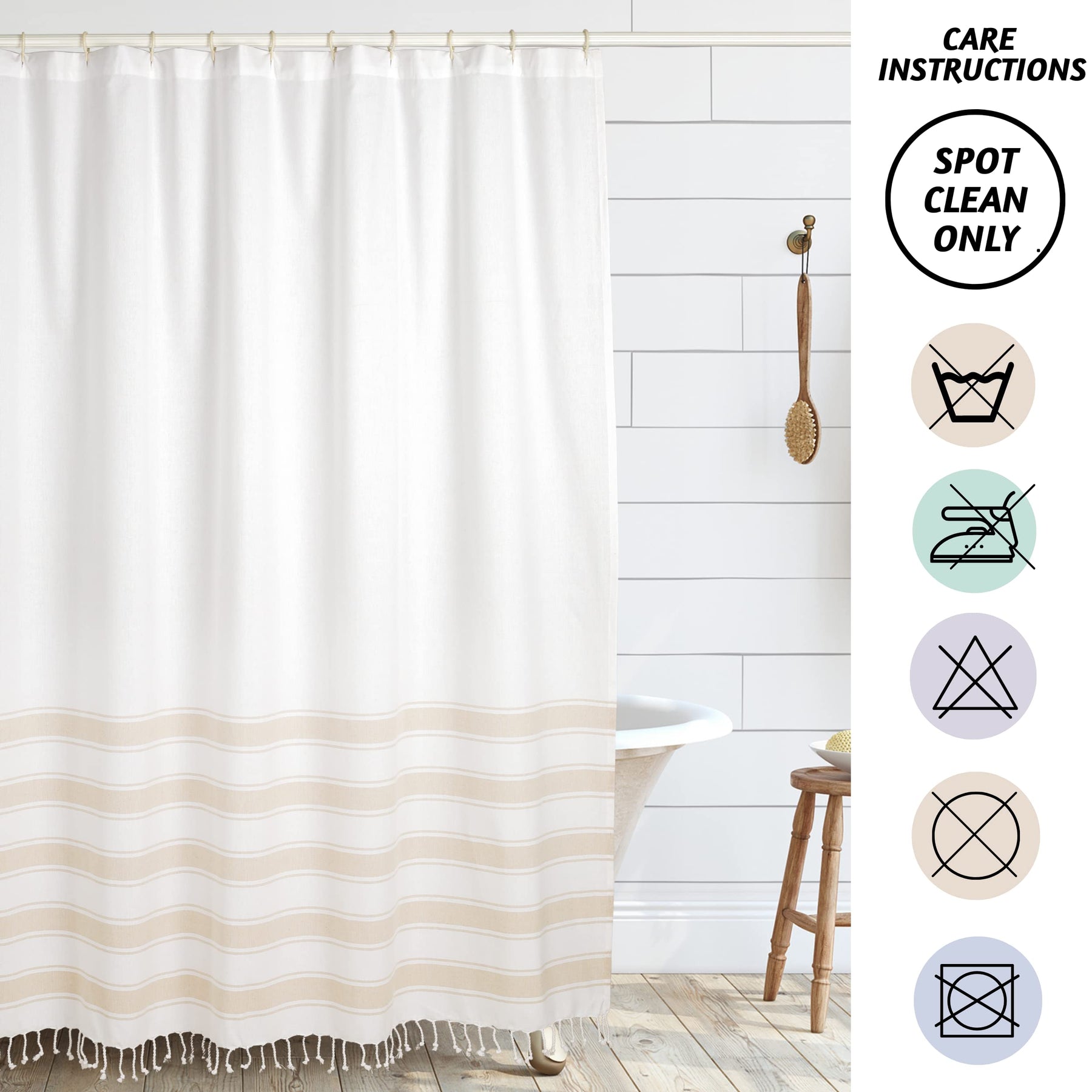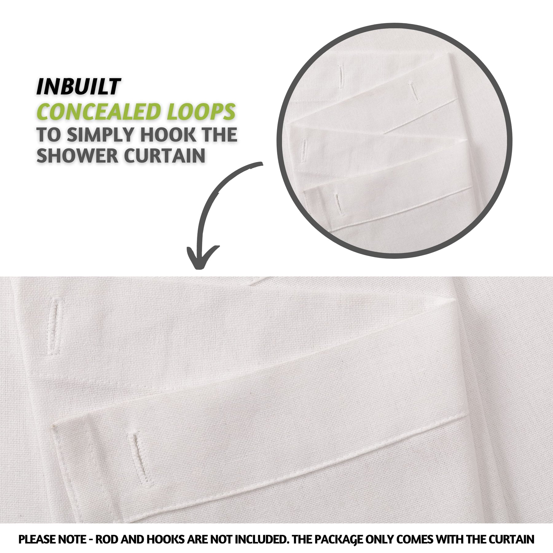 Introducing a complete new set of bath accessories. Your bathroom design just got better with these new water repellent technologies, these cotton shower curtains have the water resistant technology that actively repels water inside and lets it slide without any absorption. The cotton shower curtain or white fabric shower curtain does not require a liner. The shower curtain grey comes in a standard square size of 72" X 72". The shower curtain or modern shower curtains is large enough to cover the bathing area in the most stylish way. This shower curtain is machine washable. Lay them flat to dry. These white shower curtains are long lasting and durable even after many washes. Available in ten cool tones. These shower curtains will definitely amp your game of bathroom looks. It is made of 100% recycled cotton and it is our own way of giving it back to the environment. These curtains comes with basic loops that fit standard hooks or rings. The modern farmhouse shower curtain or white boho shower curtain is easy to use and requires simple installation.