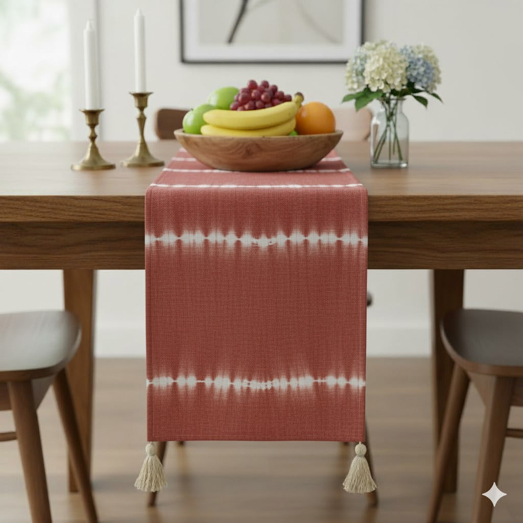 Expecting some friends and family over for a house party this year? Want something modern, affordable and handmade with love? Don't worry cause we got you covered. A soft and festive table runner for your delicate dining tables is here. The table linens are easy to wash, clean and dry. The runners are made of 100% cotton linen. They are 14 inches to 90 inches long and they fit all standard tables. The table runner can be placed on a kitchen dining table, dressing table or dresser, coffee table or even in your farmhouse tables or boho dresser. A bunch of table accents can be placed on them like a fruit bowl or flower vase or even an incense tray. in short, it is chic and beautiful just what you need for your homes. The table runners are come in unique shibori print from the traditional Japanese technique with 7 colours to choose from. These runners for table have tassels at the end of both sides of the cloth. The table linen can be a perfect gift to give your friends and family. Be it any celebration like Easter, Mother's Day, Thanksgiving, Housewarming, Christmas or New Year's eve, you cannot not have this product. Get this pretty and decorative table runner now!