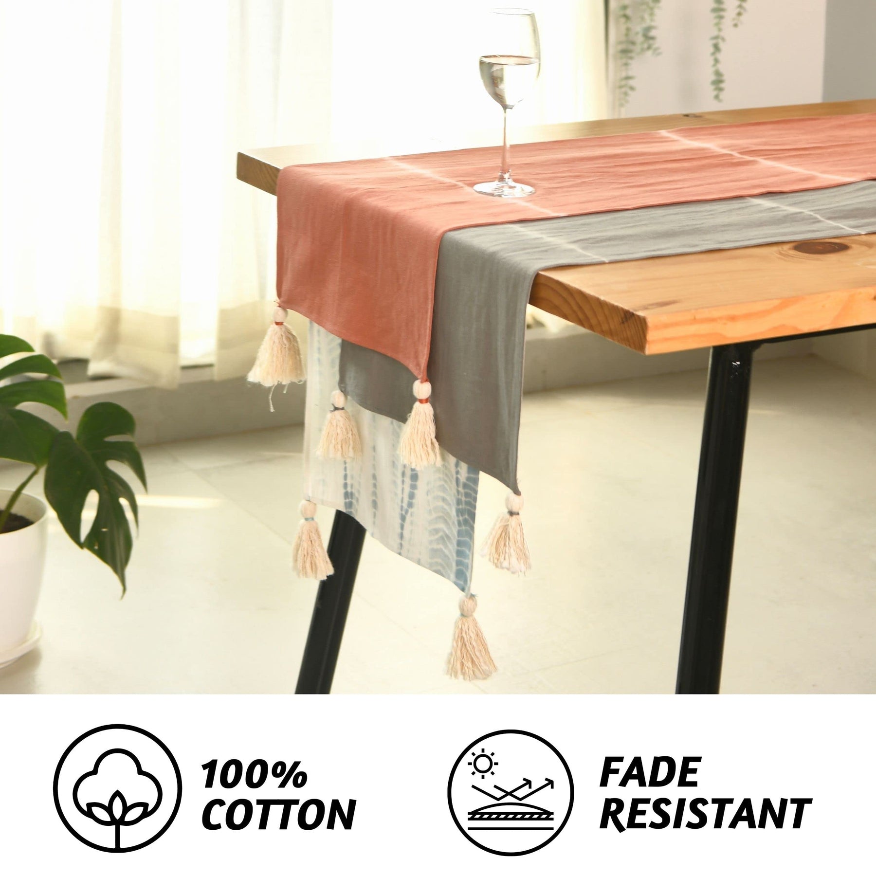Expecting some friends and family over for a house party this year? Want something modern, affordable and handmade with love? Don't worry cause we got you covered. A soft and festive table runner for your delicate dining tables is here. The table linens are easy to wash, clean and dry. The runners are made of 100% cotton linen. They are 14 inches to 90 inches long and they fit all standard tables. The table runner can be placed on a kitchen dining table, dressing table or dresser, coffee table or even in your farmhouse tables or boho dresser. A bunch of table accents can be placed on them like a fruit bowl or flower vase or even an incense tray. in short, it is chic and beautiful just what you need for your homes. The table runners are come in unique shibori print from the traditional Japanese technique with 7 colours to choose from. These runners for table have tassels at the ends of both sides of the cloth. The table linen can be a perfect gift to give your friends and family. Be it any celebration like Easter, Mother's Day, Thanksgiving, Housewarming, Christmas or New Year's eve, you cannot not have this product. Get this pretty and decorative table runner now!