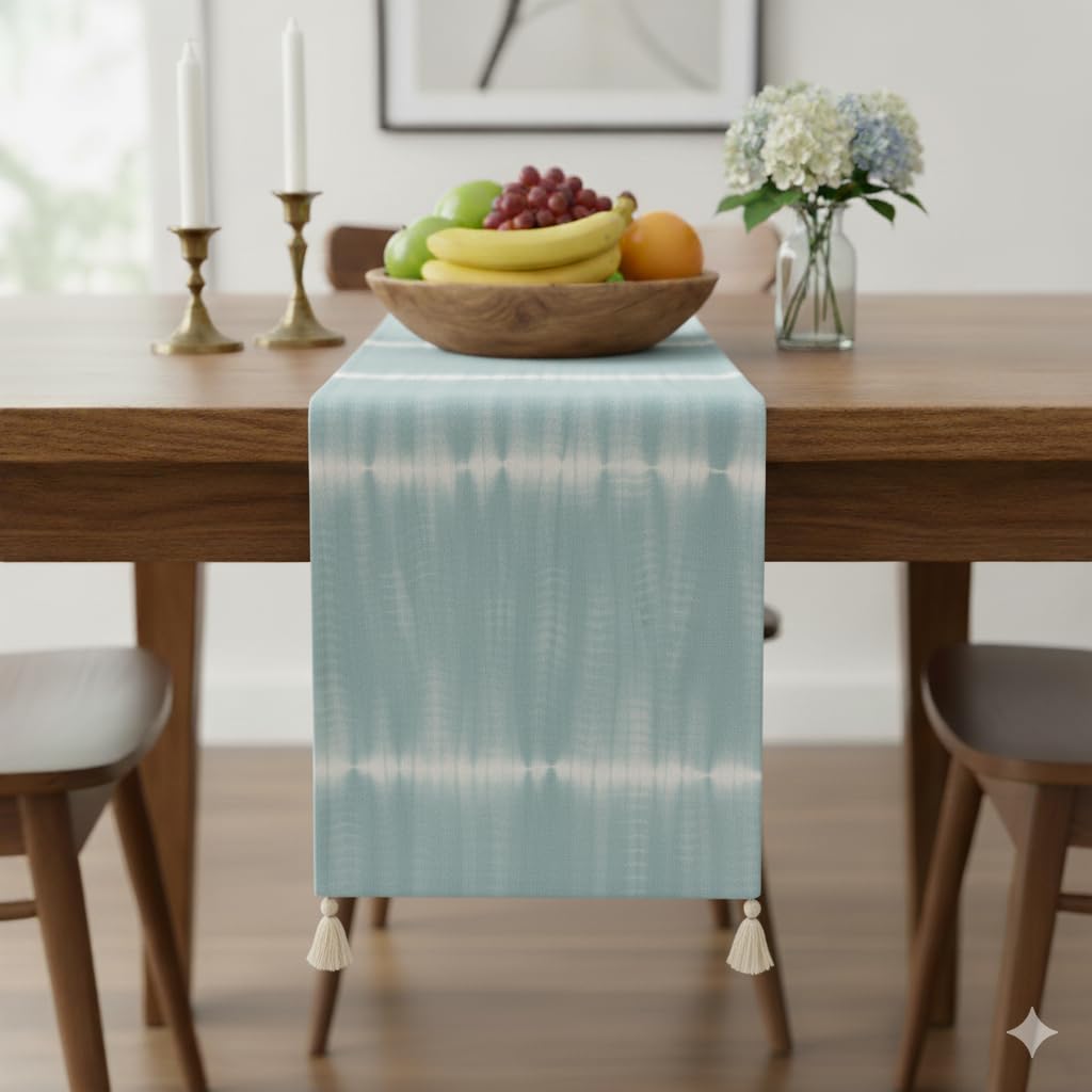 Folkulture Indie Tie-Dye Dusty Blue Table Runner 14" x 72"