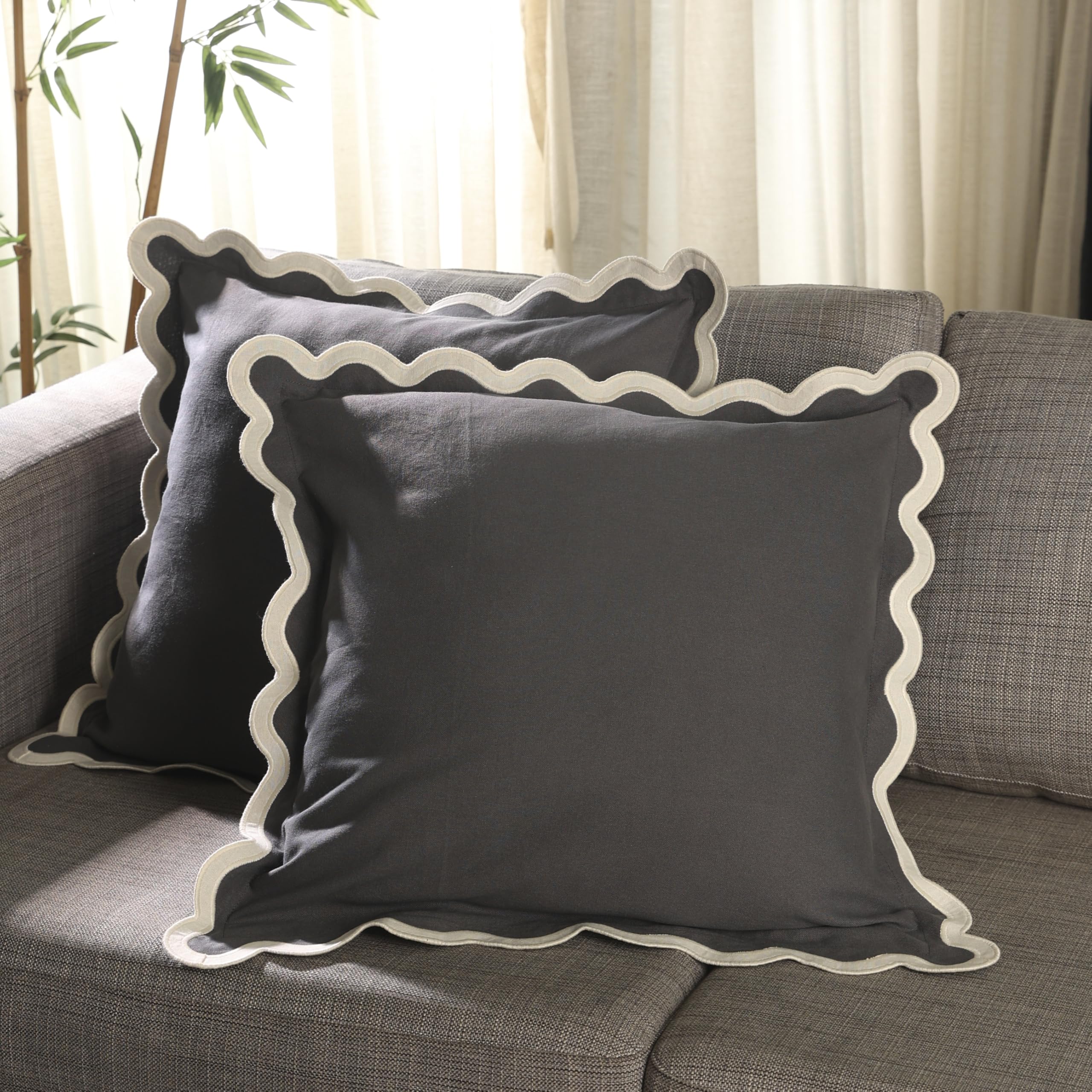 Folkulture 20" X 20" Set of 2 Cushion Cover Scallop Embroidery Oasis Slate Gray